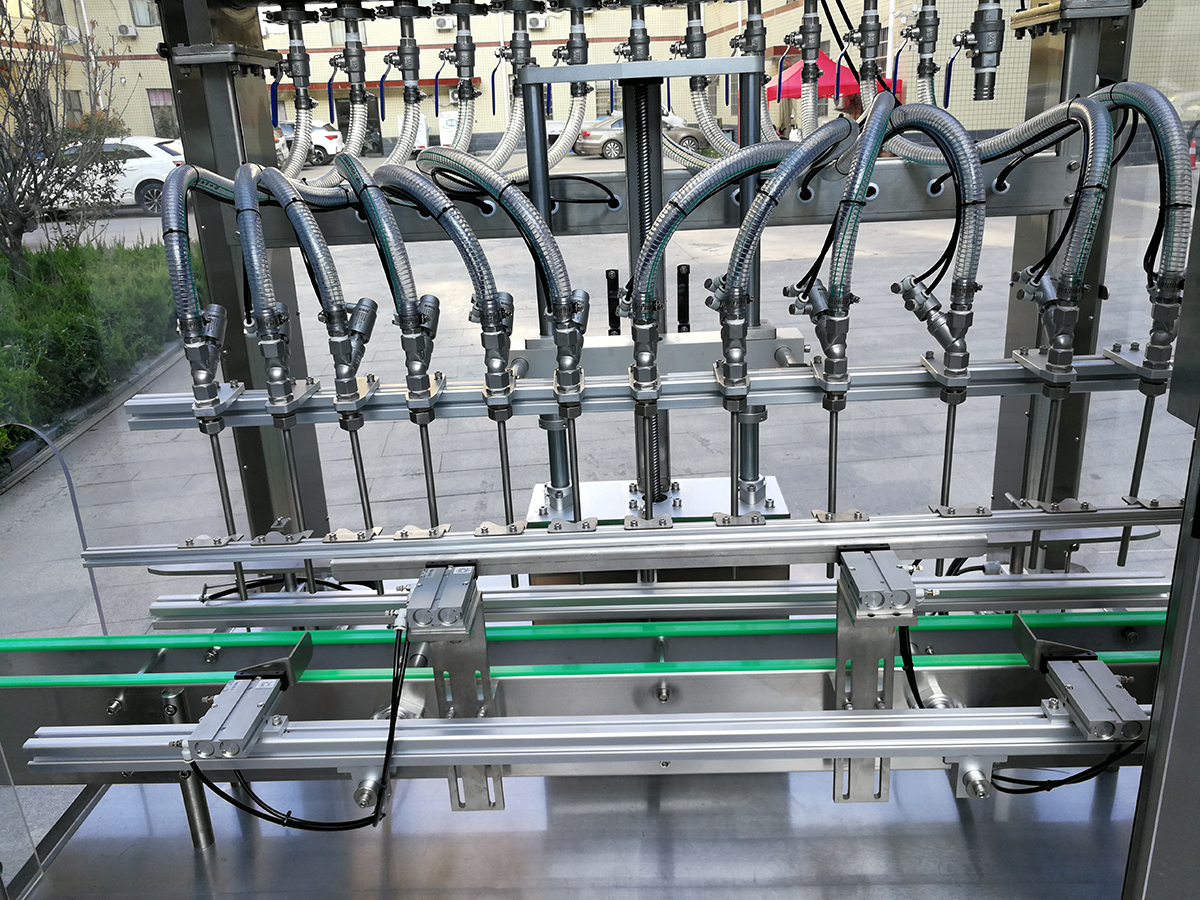5、具有無瓶不灌裝、自動進瓶出瓶、自動定位灌裝、自動控制液位等功能,自動化程度高;灌裝嘴設計科學合理,配防滴漏裝置,灌裝不滴漏,擁有物料瓶及設備的干凈衛生。